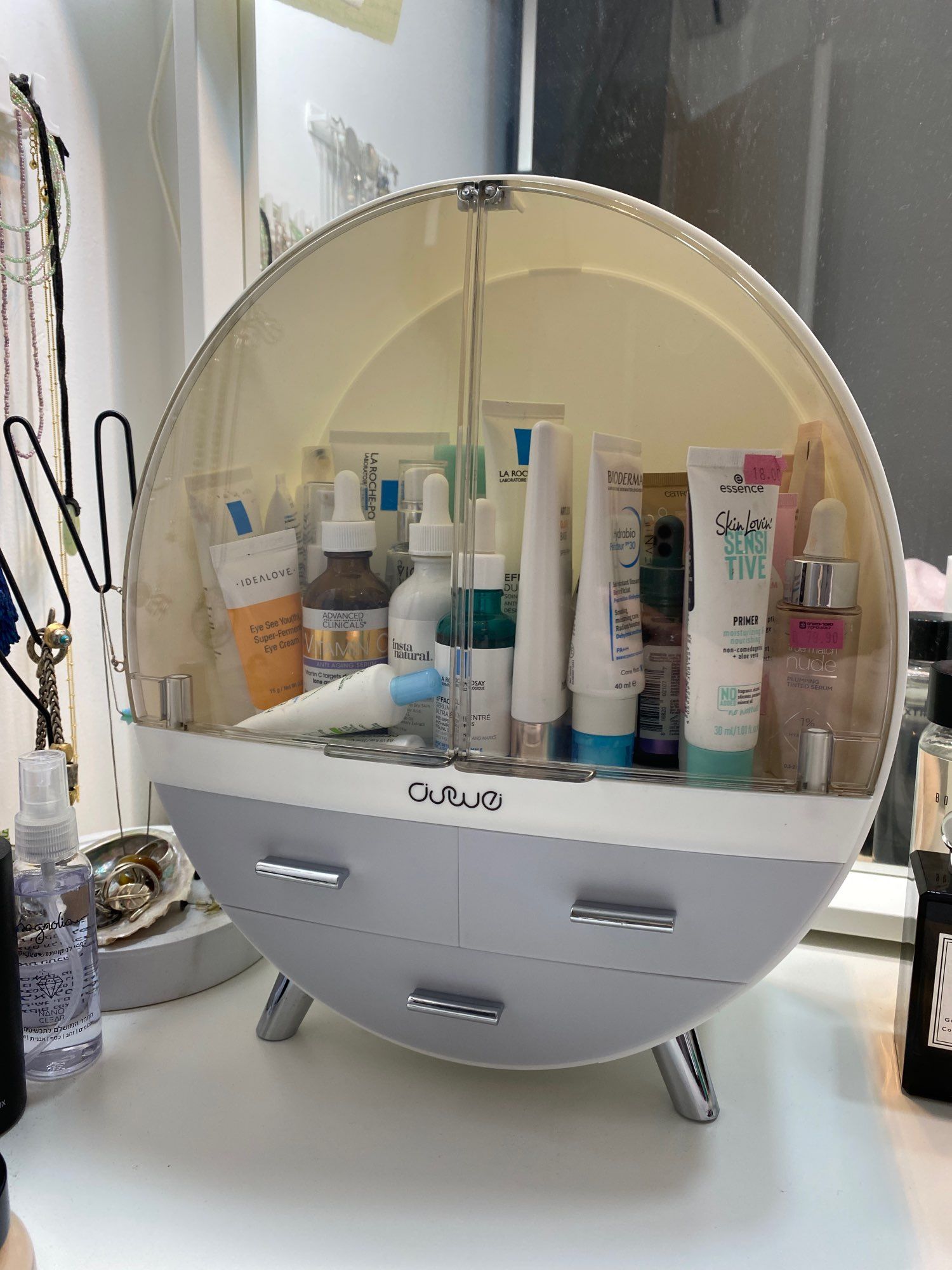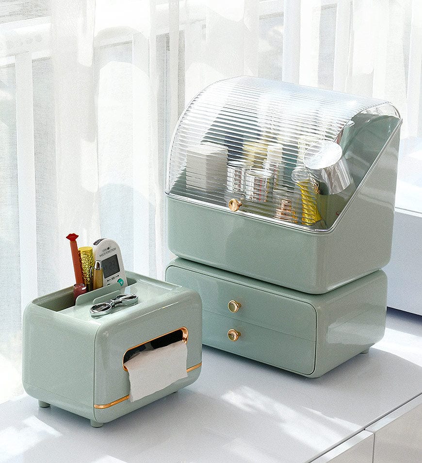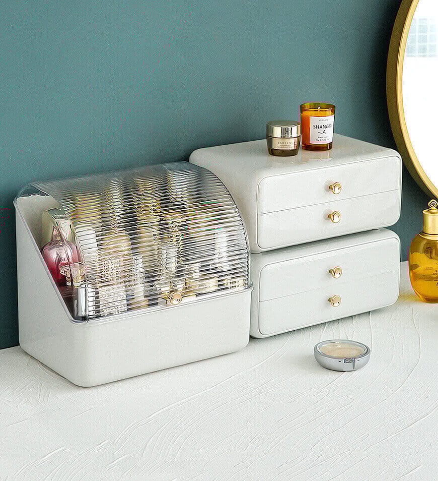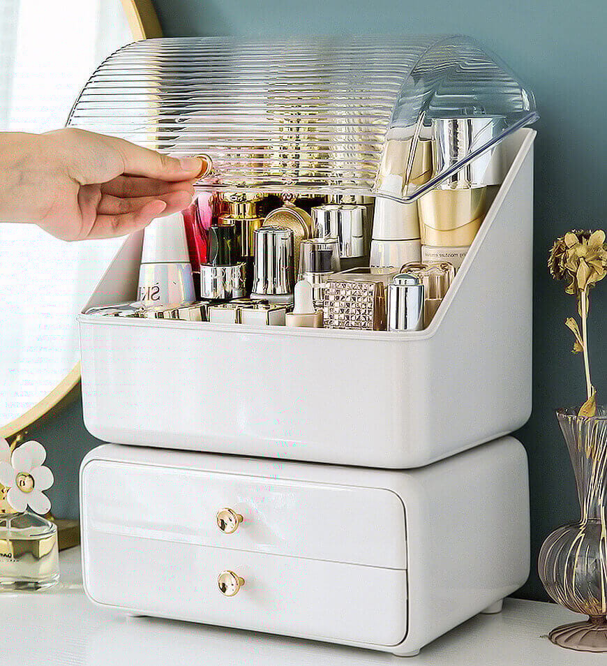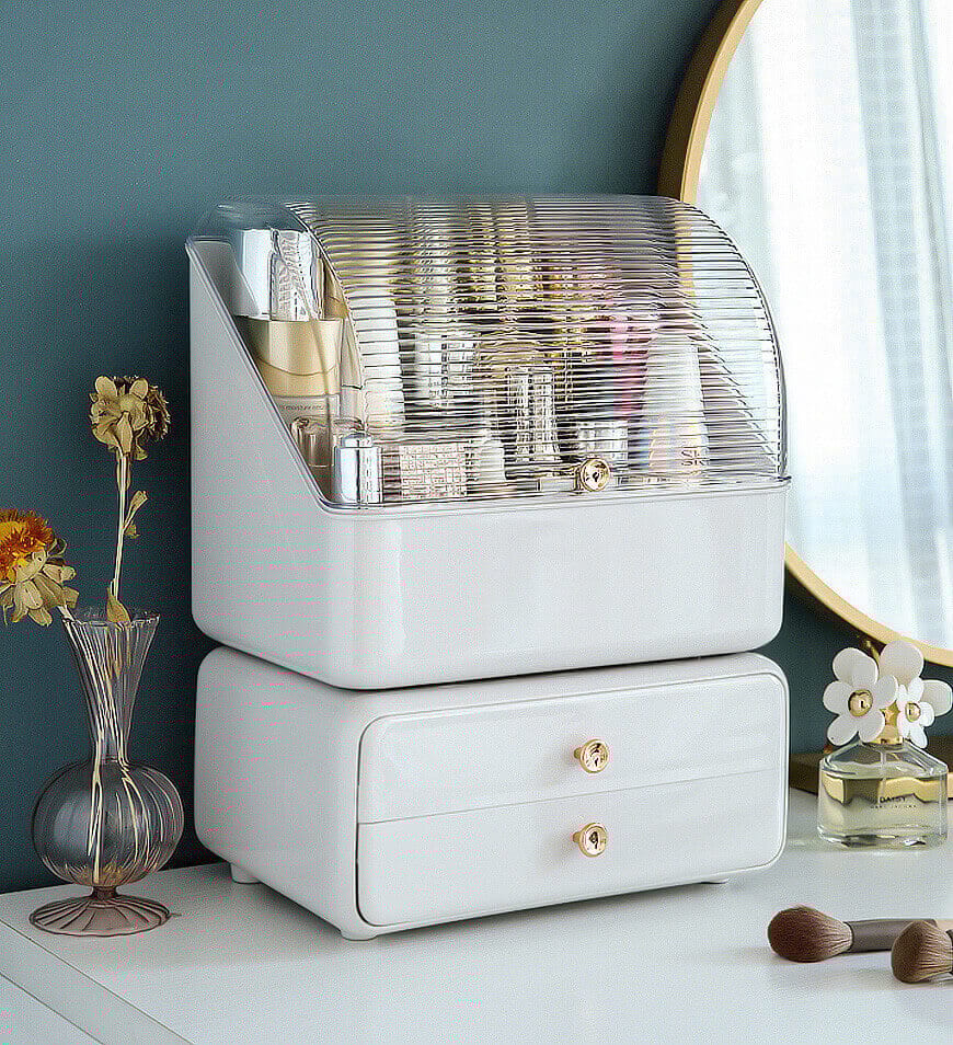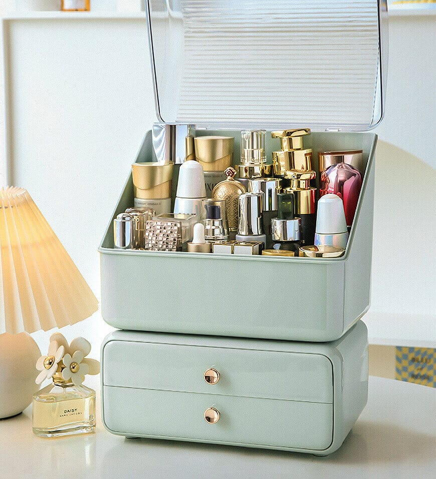 This cosmetic organizer box is made of environmental PP material, which is waterproof and dustproof. The makeup organizer box and the drawer are detachable.The box can hold makeup,cosmetics,perfume,skincare and more.The drawer can hold jewelry,lipstick and facial mask, etc. This cosmetic organizer box is a great way to store your cosmetics and keep them clean and organized.
