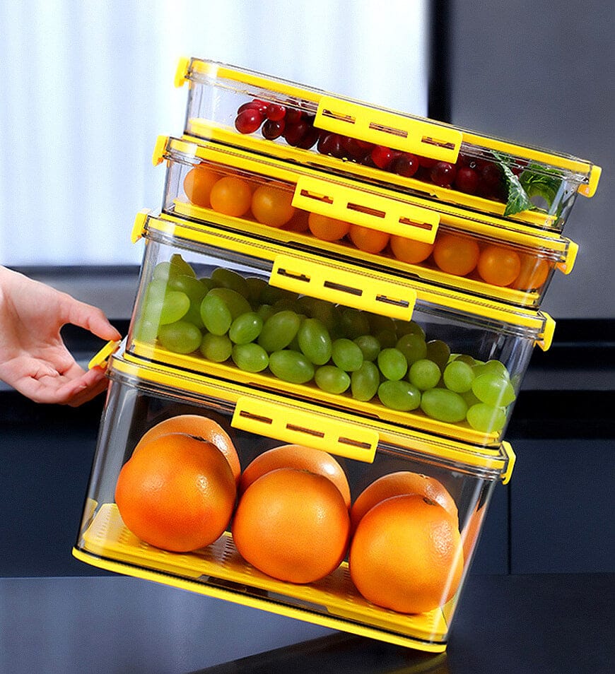 The Seal Timer Food Container Set is an excellent addition to your kitchen. These containers are perfect for storing soups, condiments, sauces, dressing, salads, fruit, baby food, healthy snacks and leftovers. The set includes 9 pieces: (1) 16-oz. container with a lid, (2) 32-oz. containers with lids, (2) 64-oz. containers with lids, and (2